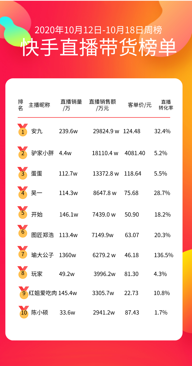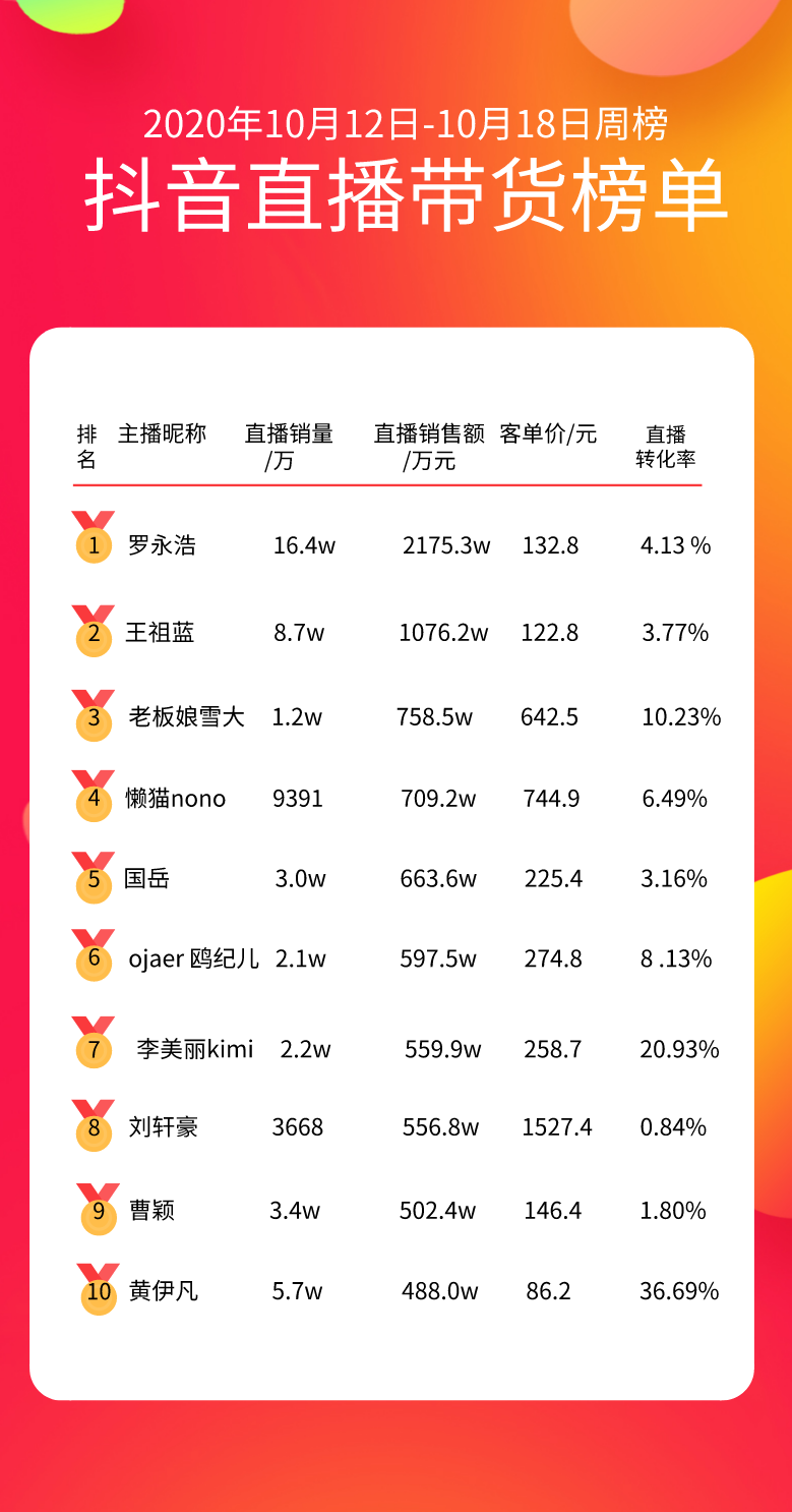 (10.12-10.18周榜,数据来自飞瓜数据)