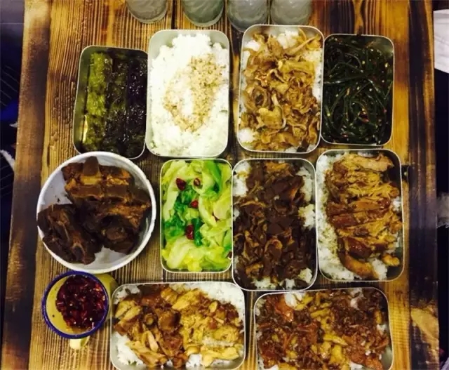 长春好旺角皮草城对面有一家老盒饭,老板很怀旧,店里都是旧物,桌子是缝纫机改装,每份饭价格10—15元不等,味道很好,而且免费的酸菜骨头汤也炒鸡好喝。