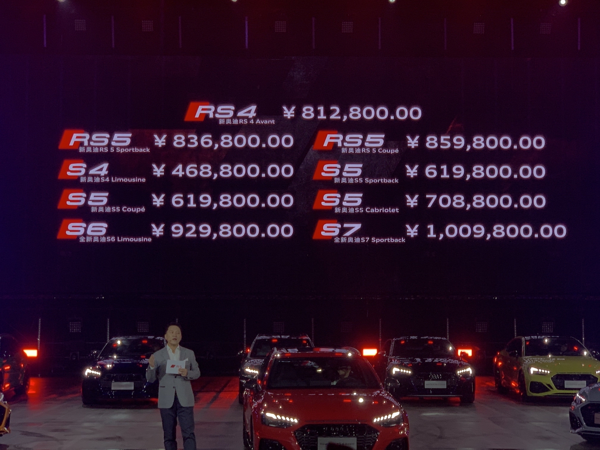 这个德国豪华汽车品牌周二(10月20日)宣布,旗下新款RS 4 Avant、新款RS 5 Coupe、新款RS 5 Sportback、新款奥迪S4、新款奥迪S5 Sportback、新款奥迪S5 Coupe、新款奥迪S5 Cabriolet、全新奥迪S6及全新奥迪S7 Sportback等高性能运动车型正式上市。新车包括RS家族的3款新车以及S家族的6款新车,售价区间为46.88万元-100.98万元。