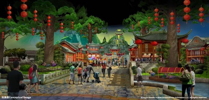 漫步在“功夫熊猫盖世之地”主题景区中的标志性景点“和平山谷”。这里的景观取材于梦工场动画公司系列动画影片《功夫熊猫》,围绕“中国式传奇体验”进行设计,将成为环球首个以“功夫熊猫”为主题的景区。“和平山谷”是电影主人公熊猫阿宝生活的小镇,在这里,可以与阿宝一起踏上一场功夫冒险,享受园区独特的激流勇进项目“功夫熊猫:神龙大侠之旅”,抗击功夫史上最大的威胁——天煞。