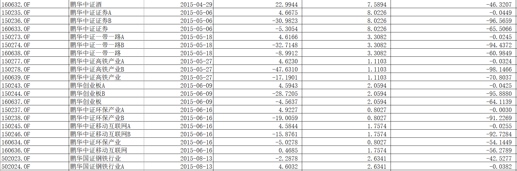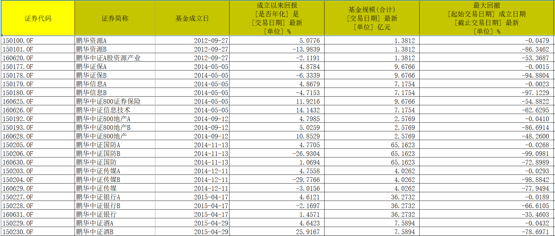 截止10月20日,目前鹏华基金旗下仍有15只分级基金,等待转型或清算。