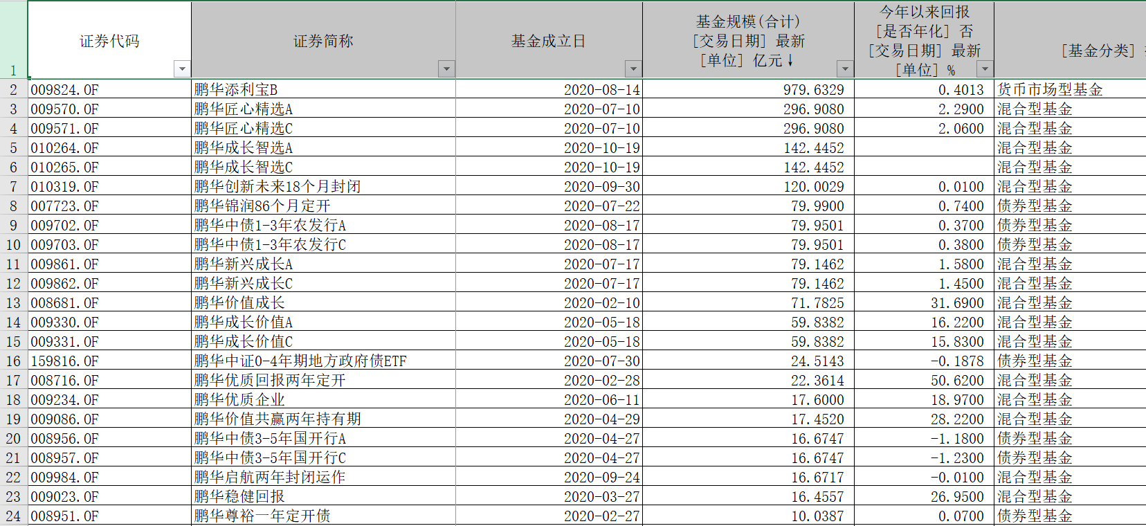 Wind数据显示,截至10月20日,鹏华共发行新基64只,规模合计2885.77亿元。其中,仅一只货币基金——8月14日成立的鹏华添利宝B,就募集了979.63亿元的巨额资金。