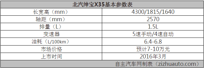 绅宝X35将定位为一款介于X25与X55之间的全新小型SUV。