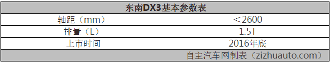 在2016年到2017年的这段时间里,东南汽车将推出三款不同级别定位的全新SUV车型,其中定位低于东南Dx7车型的小型SUV东南DX3将于2016年北京车展期间正式发布,并计划于2016年下半年率先推出。