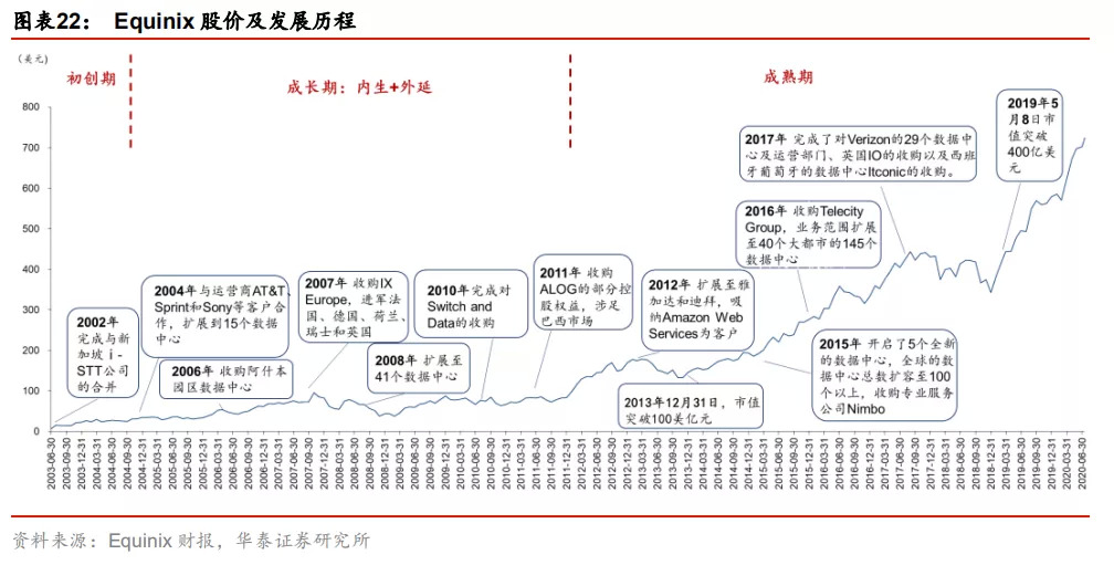 回顾Equinix的发展之路,可以清晰的发现其股价与规模呈正相关。