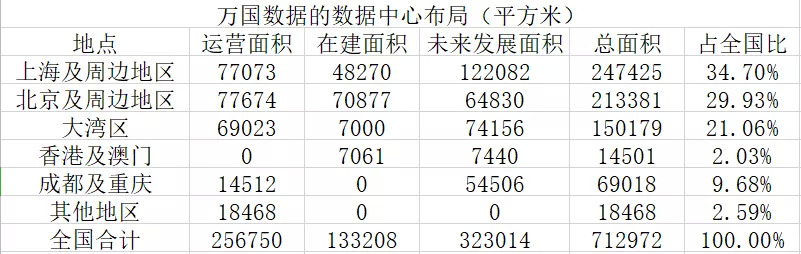 核心地区产业政策的收紧,无疑对具备先发优势的万国数据是重大利好。具体而言,万国数据在一线及周边城市的整体数据中心布局61.10万平方米,占全国总布局的85.7%。