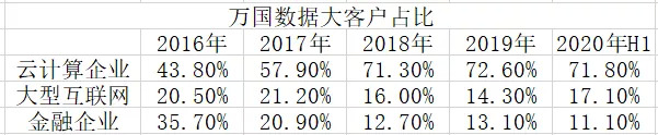 在2020年上半年中,云计算企业在万国数据的占比已经由2016年的43.8%提升至71.8%,成为万国数据业绩增长的核心支撑动力。