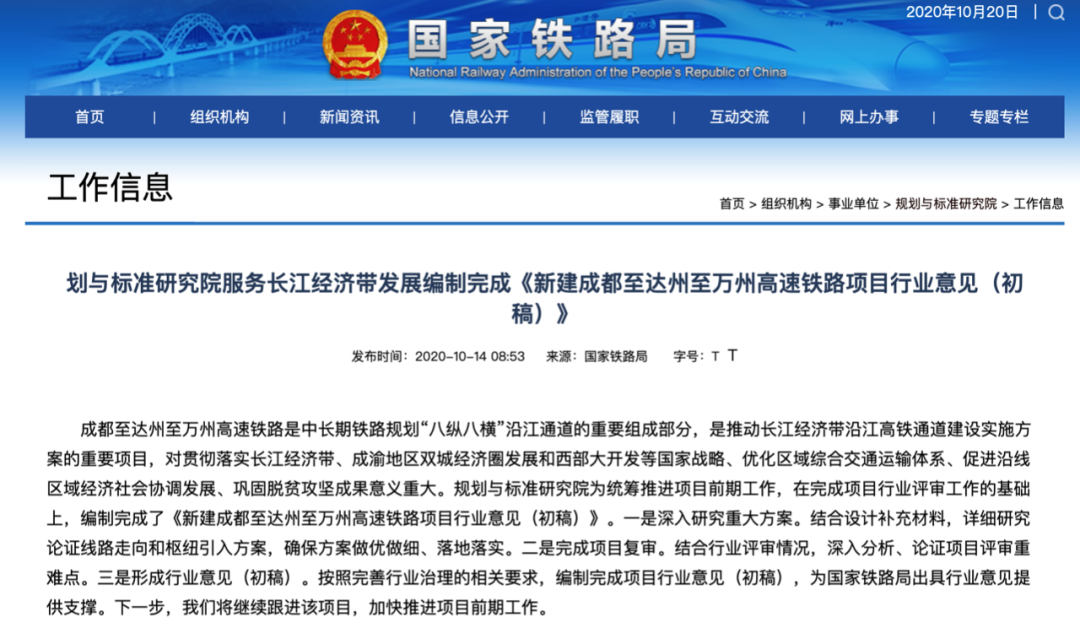 今年3月,交通运输部网站(重庆交通子站)发布的《新建铁路成都至达州至万州铁路项目环境影响评价第一次信息公示》显示,成南达万线路,西起成都市,向东经四川省资阳市、遂宁市、南充市、达州市,终至重庆市万州区。