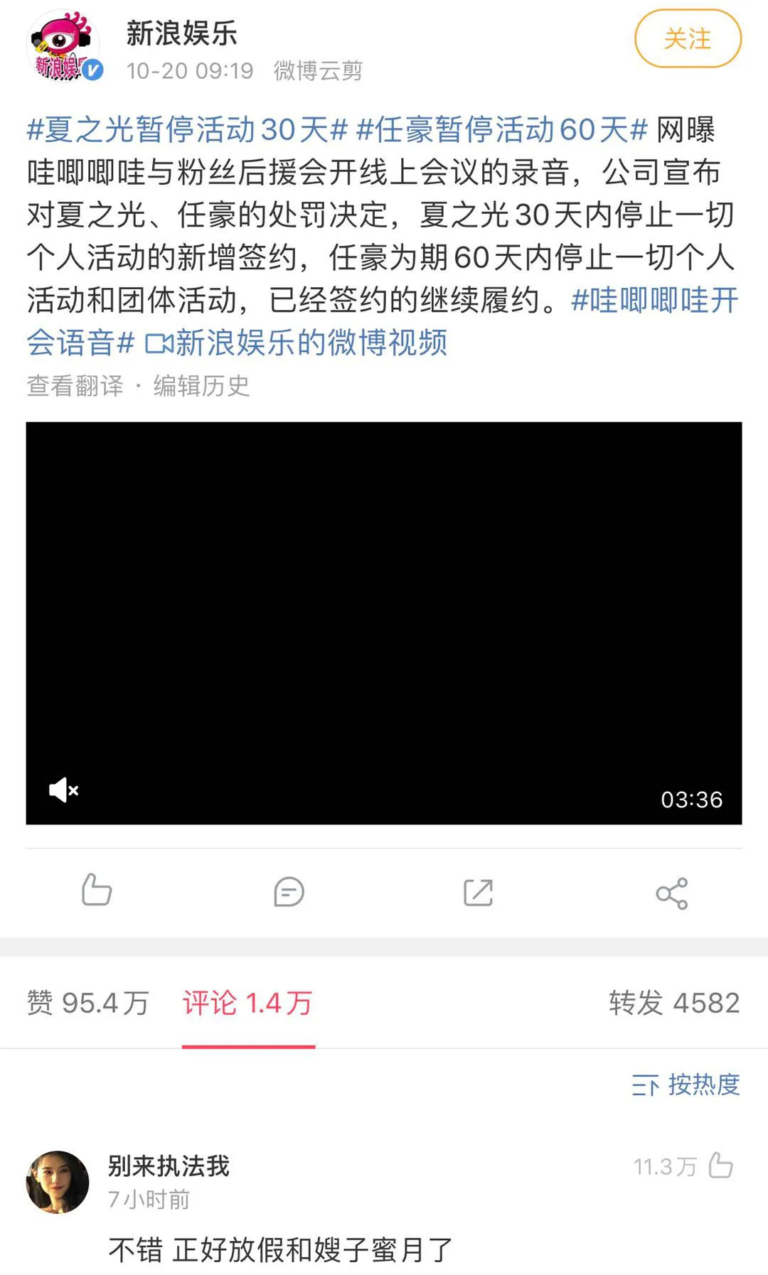 直到第三天的凌晨,文豪才草草复制了团队的公关糊弄文,没有否认网红女友的指控,相当于默认。10月16日任豪道歉再登热搜,随后同团的夏之光和女友钟丽丽恋爱视频曝光,才把任豪的热度降下来,算是舍身搭救。