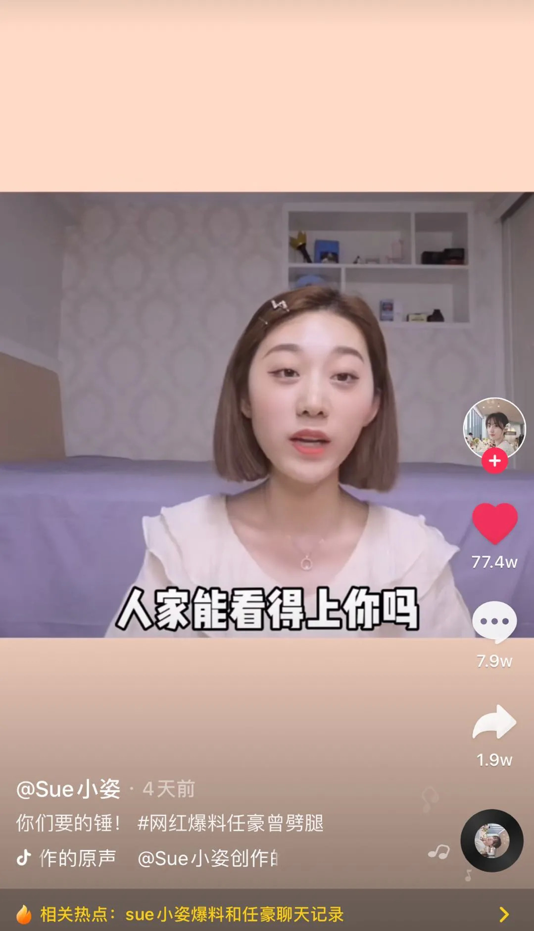 一嫂未平,一嫂又起。另一网红sue小资又在抖音发布了“锤豪”视频,语音、聊天截图和朋友圈照片可谓铁证如山。化名李天琦和sue小资谈朋友,下海捞完鱼又把人姑娘的微信给删了。