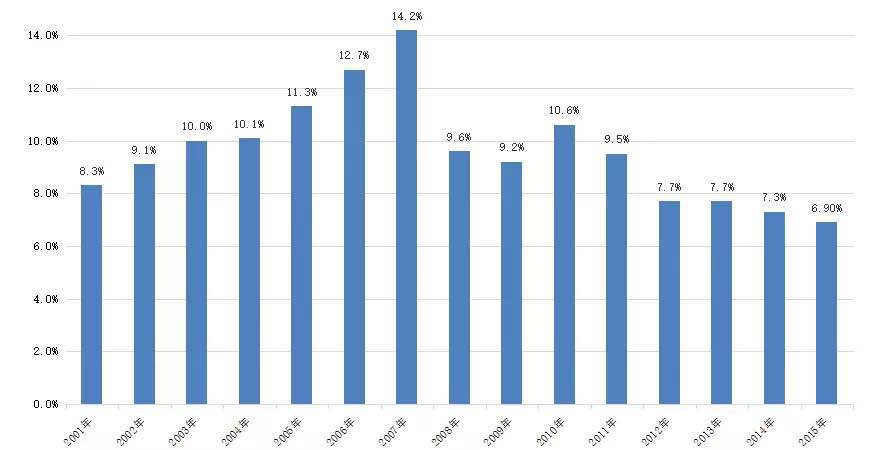 ▲新世纪以来中国GDP增速(数据来源:国家统计局)