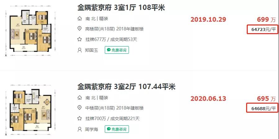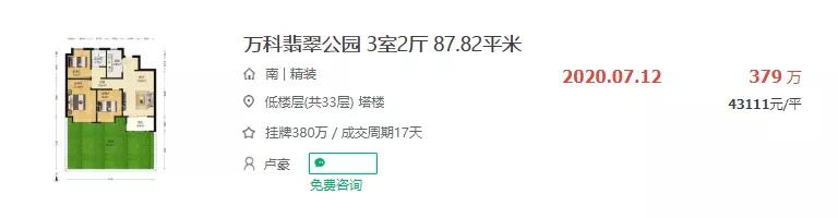 根据链家网上数据显示,朗诗玲珑屿、万科翡翠公园等二手房成交价均早已突破4.3万/㎡,挂牌价更是超5万+/㎡。
