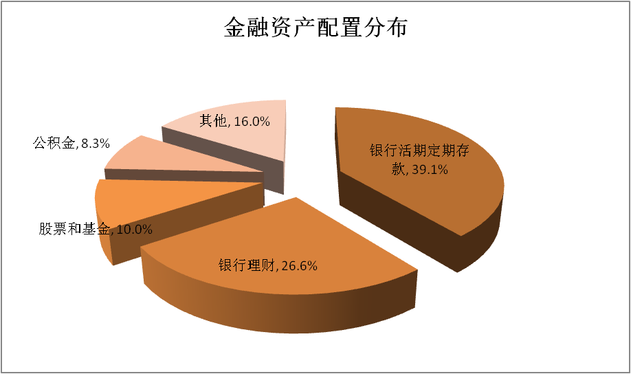 报告显示,目前中国城镇居民家庭(不含农村)总资产的均值为317.9万元,从结构上来看,我国居民资产以实物资产为主,而实物资产中以住房为主,住房占家庭总资产的比重为59.1%,而美国的这一比重只有30.6%。受调查家庭中,有99.7%的家庭拥有金融资产,户均金融资产64.9万元,占家庭总资产的20.4%。