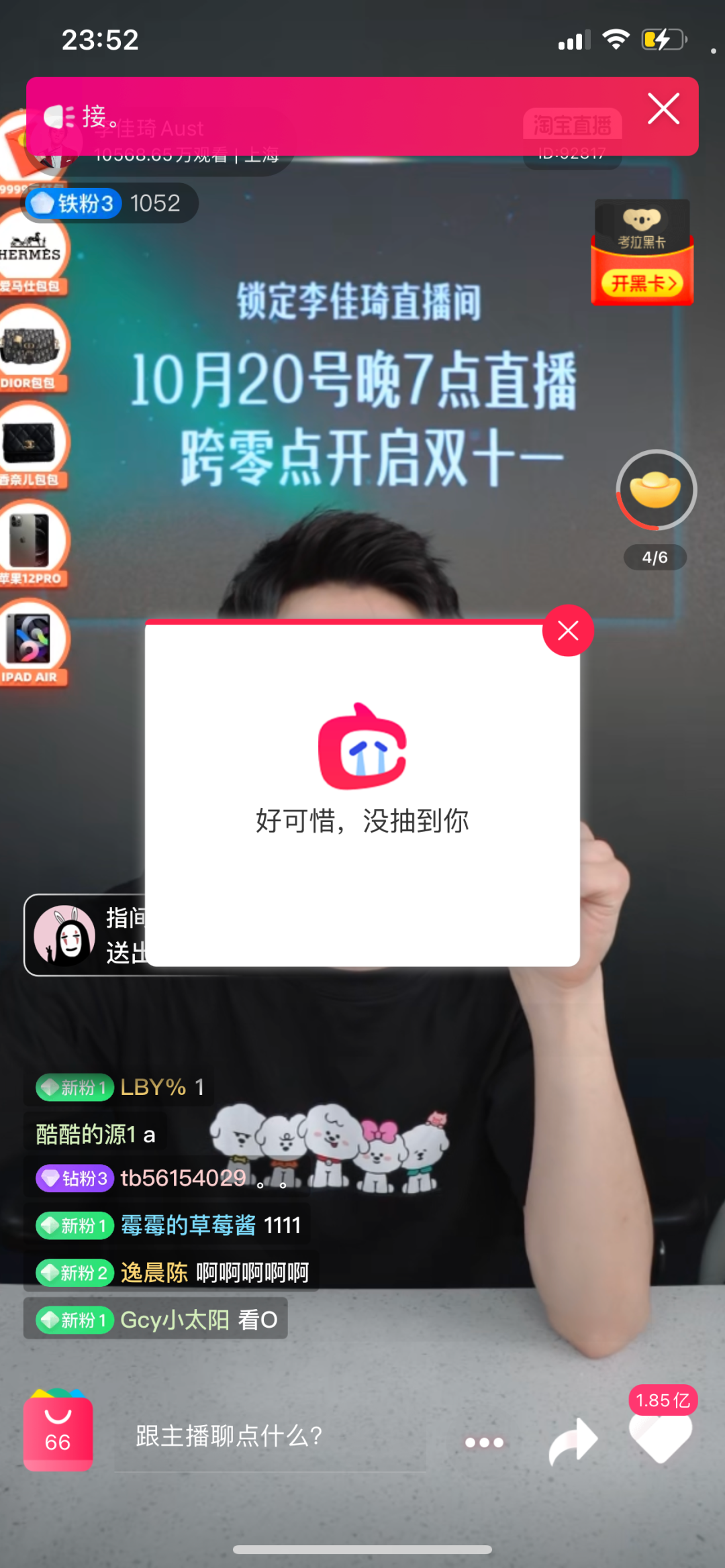 在李佳琦一个官方粉丝群里,没抢到商品的粉丝纷纷开启吐槽模式,“他们的网都是10G的嘛”“我死心了”“太疯狂了”“好气,我要被气死了”。