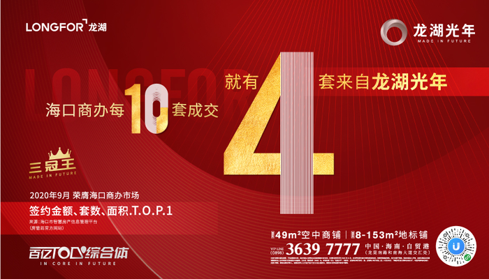 龙湖南下自贸港,走出与国际接轨的重要一步,市场反响也十分热烈。海口市智慧房产信息管理平台公布数据显示,目前在售的海口龙湖光年大道地标铺、空中商铺两类产品市场认可度极高,8、9月份连续蝉联全市商办签约金额、套数、面积TOP1。据相关人士披露,过去的一个月,龙湖光年大道项目日均到访超170组,单笔成交超4800万元;6月27日-10月5日期间,访客达17093组,留电57677组,60天内销售额突破12亿元。