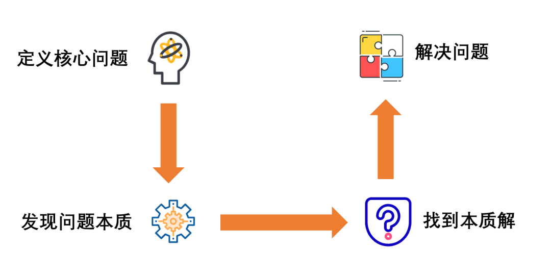 先定义困难中最核心的部分,找出它的本质,再发现本质解,从而解决问题。