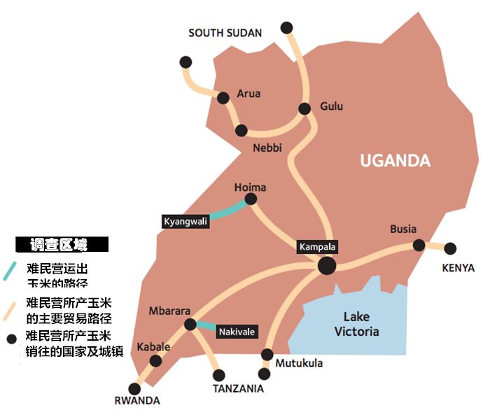 图片说明:难民所种玉米的贸易网络。 图片来源:牛津大学难民研究中心