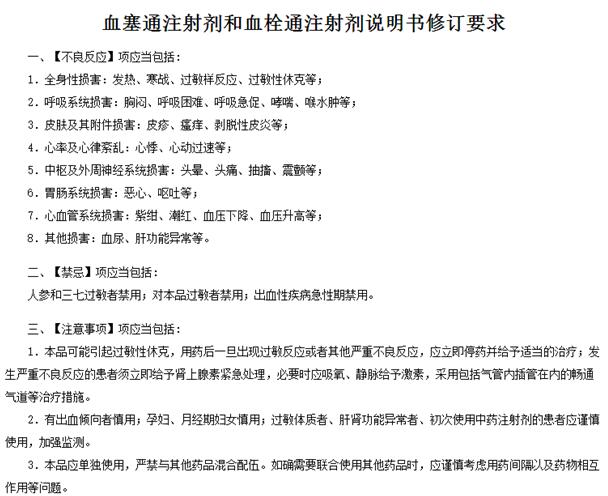 新版说明书明确罗列了血塞通和血栓通注射剂可能引发全身性、呼吸、皮肤、心脏、神经、胃肠、心血管系统及肝肾等八方面详细的不良反应症状。显然更强调用药的安全性。
