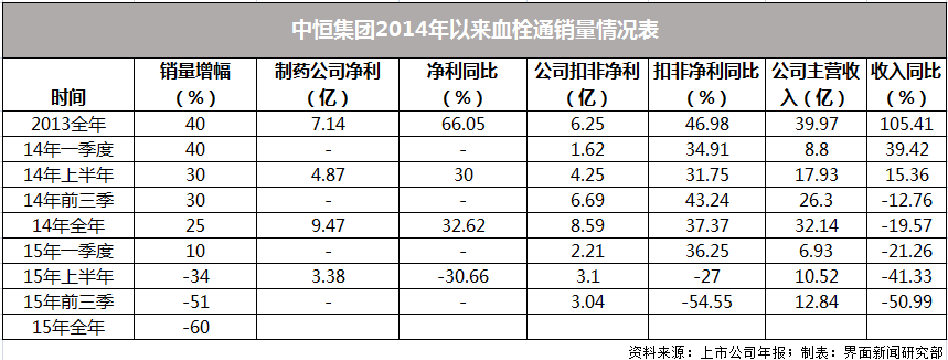 上周,中恒集团预告,2015年度实现净利润同比减少60%-80%。其中,控股子公司梧州制药主要产品注射用血栓通(冻干)系列产品销量较去年同期下降约60%。