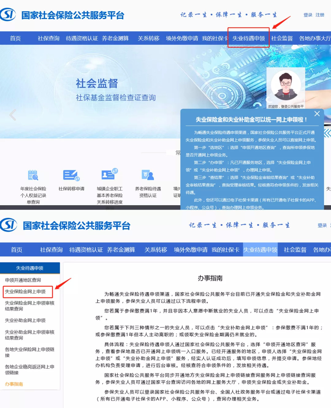 ③进入国家社会保险公共服务平台(http://si.12333.gov.cn/index.jhtml),点击“失业待遇申领”,选择“失业保险金网上申领”,登录后,按操作进行申请。