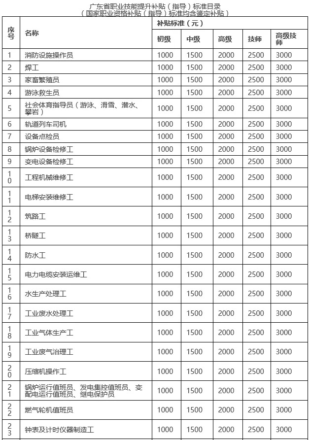 紧缺职业(工种)目录和补贴标准,待广东省另行发布相关文件后执行。