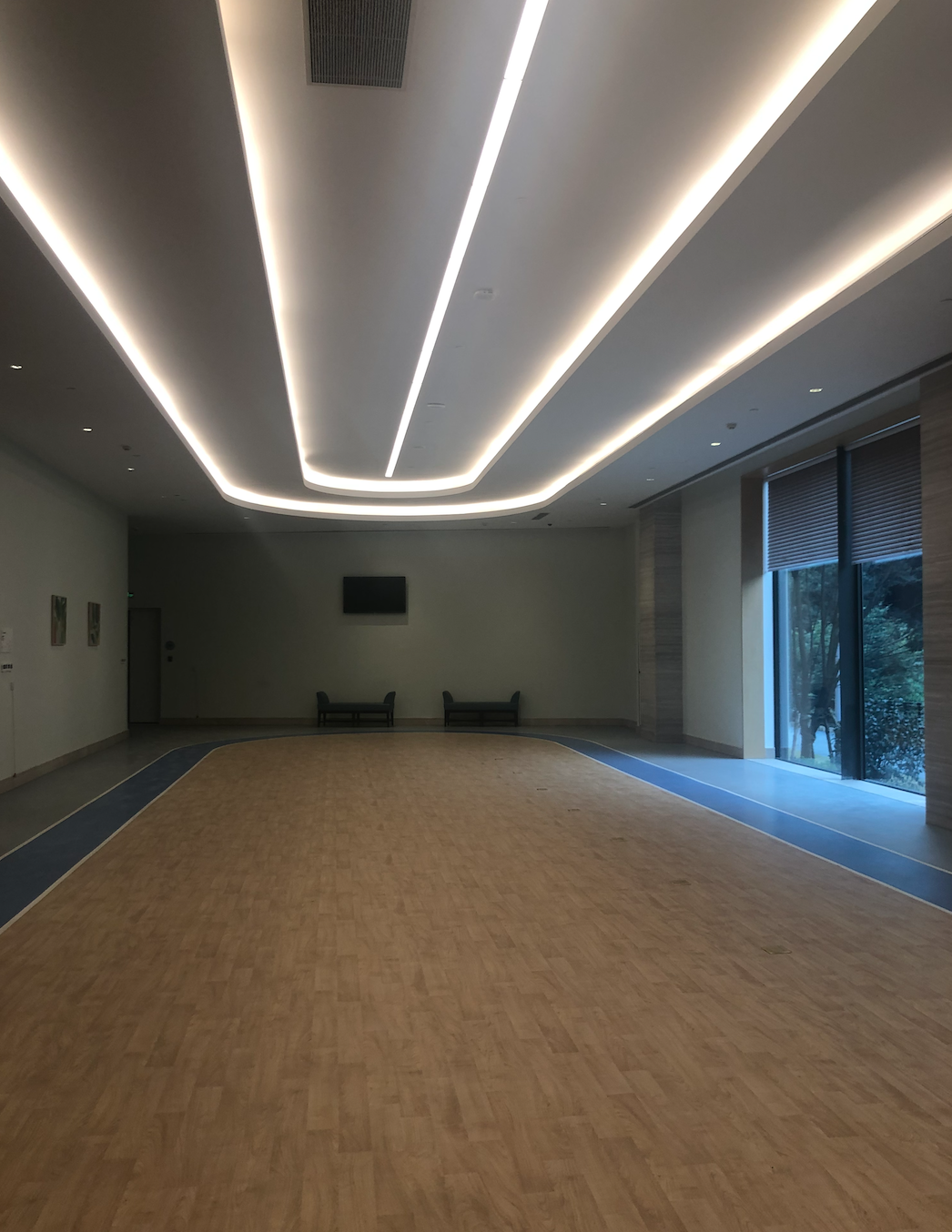 通过风雨连廊步行至活动中心,则可以看到图书馆、钢琴室、台球室、手工/书画教授、健身房、电影放映厅、泳池、养心室、麻将室、党员活动室、教堂、佛堂等空间依次分布,文体设施齐全丰富。
