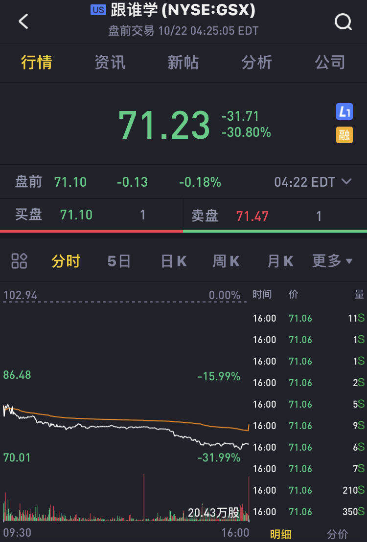 造成教育类公司股价大跌的直接原因,是昨天市场中有传言跟谁学Q3业绩Preview整体低于预期。
