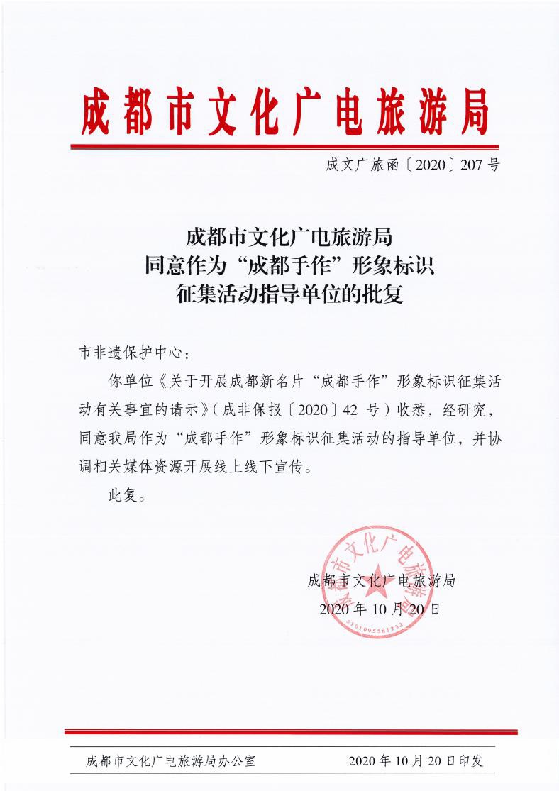 近日,为贯彻落实《国务院办公厅关于转发文化部等部门中国传统工艺振兴计划的通知》(国办发〔2017〕25号)有关要求,弘扬中华传统文化,振兴传统工艺,推进非遗活化利用,促进非遗与旅游融合发展,提升成都传统工艺作品形象识别度,中央美术学院驻四川成都传统工艺工作站联合成都市非物质文化遗产保护中心拟打造成都新名片、成都非遗公共品牌“成都手作”,现面向全社会公开征集 “成都手作”形象标识。
