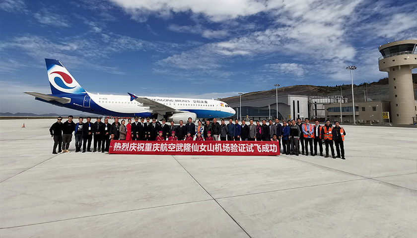 23日重庆仙女山机场开展真机验证试飞,重庆航空空客A320飞机在5小时内,完成各项飞行科目测试,并顺利通过民航局验收检查,为该机场如期通航奠定基础。