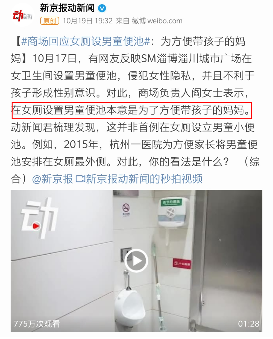 在女厕里安装男童便池,看似是方便亲子共同出行,却没有去质疑“爸爸去哪儿了”,反而强化了就该妈妈带孩子的刻板印象。