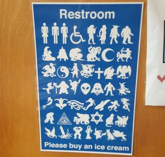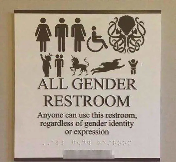 还有很多厕所更进一步,不管你什么性别,是天线宝宝、独角兽、恐龙,还是超人、二头人、安卓机器人,都“欢迎您来,欢迎您再来”。