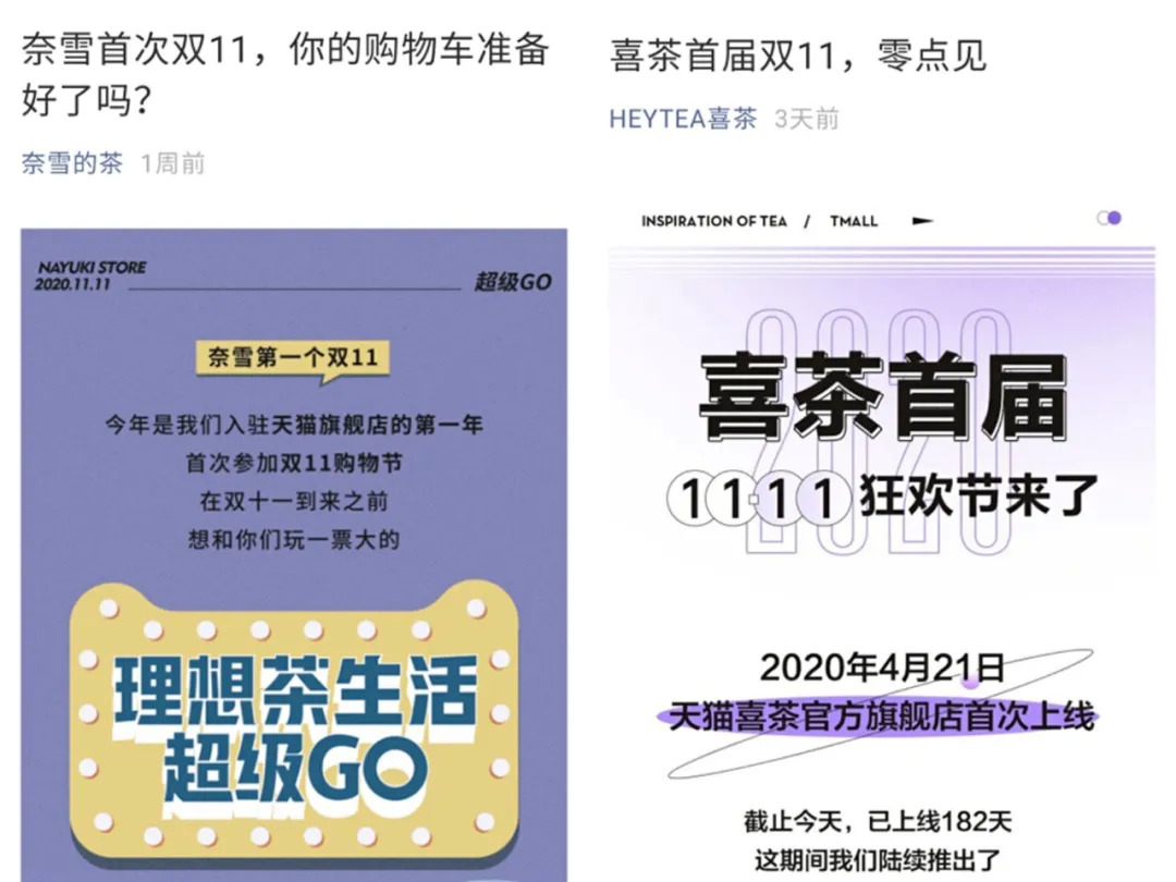 某种程度上来说,喜茶和奈雪的茶先后入驻天猫,又同时参与双十一,也可以视为他们立体化表达品牌调性的相同举措。