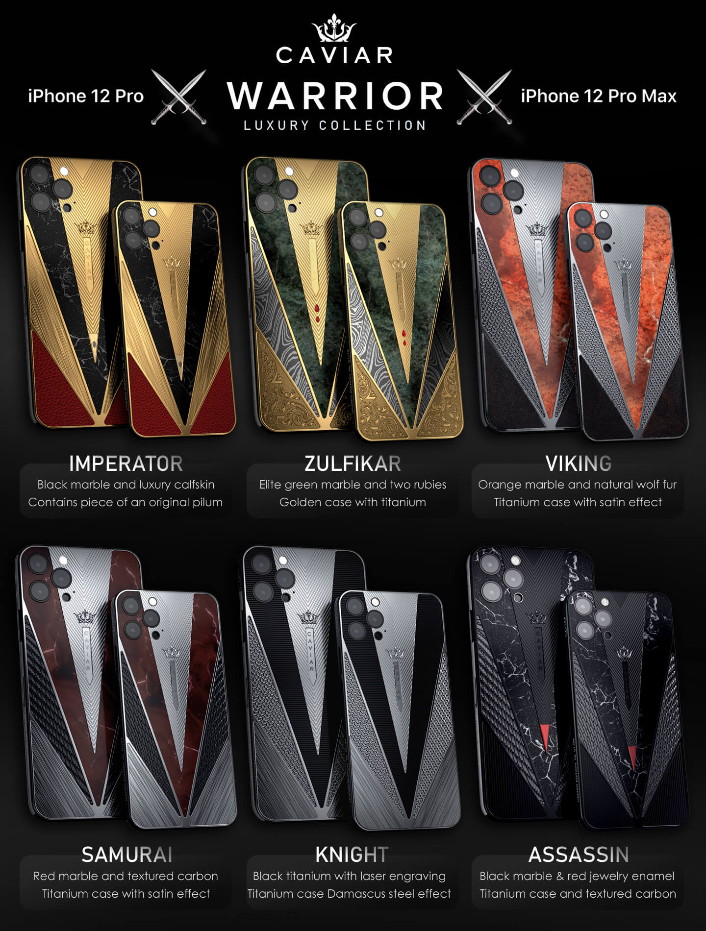 俄罗斯卫星通讯社10月23日消息,俄罗斯苹果产品定制商Caviar发布iPhone 12 Pro特别定制版,以致敬从维京人到武士等不同民族和时代的传奇战士。据了解,Caviar使用钛、金、大理石、红宝石、皮革,毛皮和大马士革钢等材料作为装饰。
