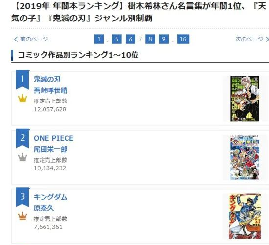 据日本Oricon公信榜统计,《鬼灭之刃》是2019年日本最畅销漫画,2020年1~8月《鬼灭之刃》漫画销售热卖5376万册,是第二名《王者天下》的10倍,截至今年9月,包含电子版在内的漫画单行本累计发行量已突破1亿册,成为近两年日本最火爆漫画作品。
