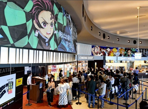 《鬼灭之刃》10月16日在日本403家影院开画,其中包括38家IMAX影院首映,成功吸引91万观影人次,取得13亿日元票房,成为日本影史首部单日票房达10亿日元的影片。随后,日本开始了全民造势活动。《鬼灭之刃》剧场版的观影热潮带动影院开放100%上座率条件(但不得饮食),并在影院地铁站前的漫画、CD店铺中,以及10个楼层中必须有5个楼层,设置“鬼灭之刃”的特设专柜。
