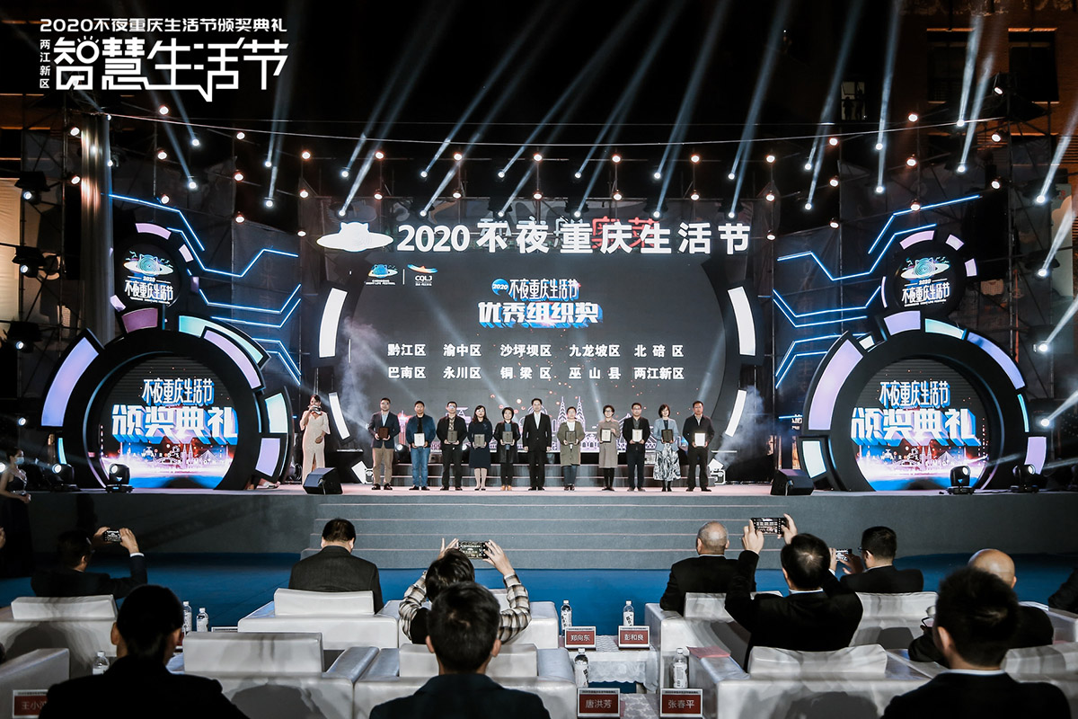 10月23日晚,由重庆市商务委、市文化旅游委、两江新区管委会共同主办,两江新区现代服务业局、两江新区市场监管局承办、阿里巴巴集团协办的“2020不夜重庆生活节颁奖典礼”隆重举行,标志着为期三个月的2020不夜重庆生活节圆满收官。