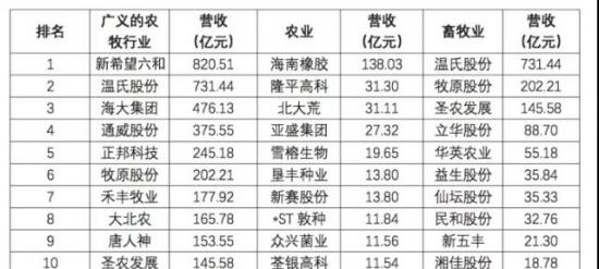 (农牧板块中国内地上市公司2019年总营收排名榜单)