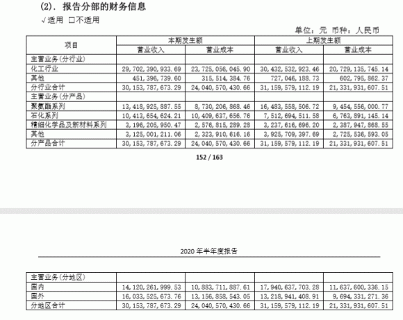对此,万华化学表示,“受新冠疫情和国际原油价格大幅下跌等因素影响,公司产品销量下滑、主产品价格下降。虽然万华化学表示采用各种方式积极应对措施,但盈利状况并没有得到改善。”在半年报当中,万华化学表示受公共卫生事件和国际原油价格大幅下跌的影响,全球化工行业处于弱势运行状态。