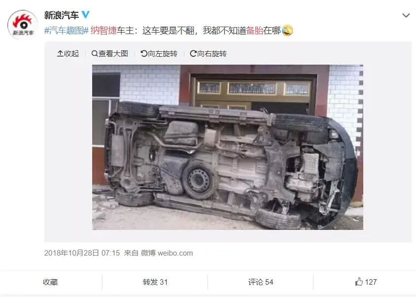 还有纳智捷的备胎,被网友们笑称,只有翻车的时候才能找得到。