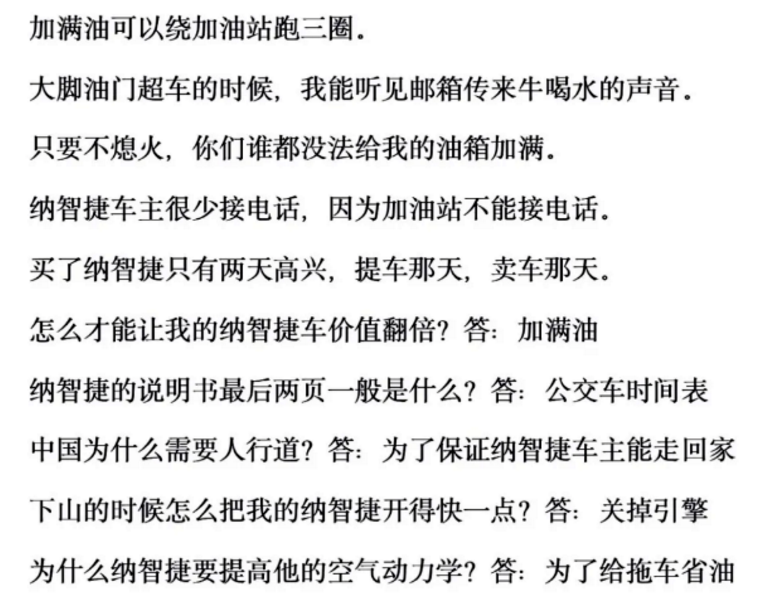 各种调侃、揶揄纳智捷高油耗、高故障率、低保值率的段子让这个品牌“红遍”社交网络。
