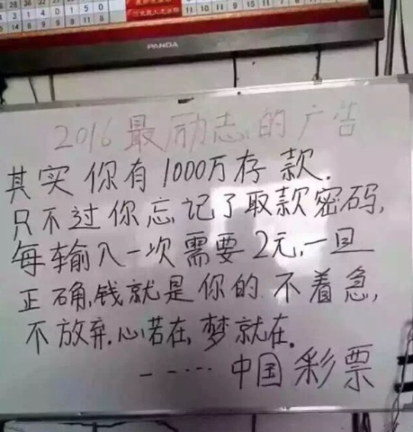 前一阵子美国彩票创下了15亿的最高中奖记录,让不少彩民纷纷有一种打了鸡血的兴奋感,买得更勤了。每次路过彩票购买站的时候,总能看到不少大叔大爷捧着一个小本子,对着墙上花里胡哨的曲线图写写画画,让人很想给他们人手塞一本《概率学》。题主的父亲就是这些大叔大爷中的一员,想劝阻父亲的这种行为,对此知友们也给出了不同的建议: