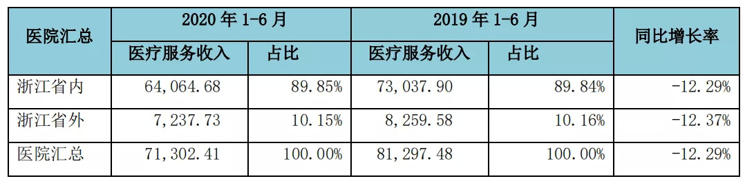 图8:浙江省内+省外的医疗服务收入构成及趋势(单位:万元)来源:公司财报