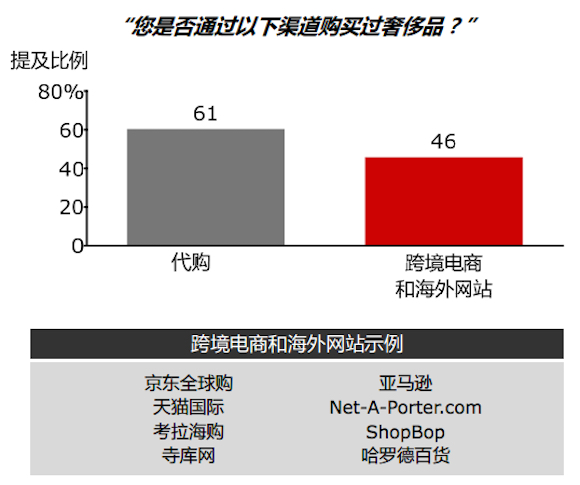 上一年的消费者调查显示,70%的中国内地受访者曾通过代购渠道买入奢侈品,他们所贡献的销售额(550 亿-750 亿)相当于中国内地门店的 50%。到了 2015 年,情况突然生变,代购的市场规模缩小至 340 亿-550 亿元。