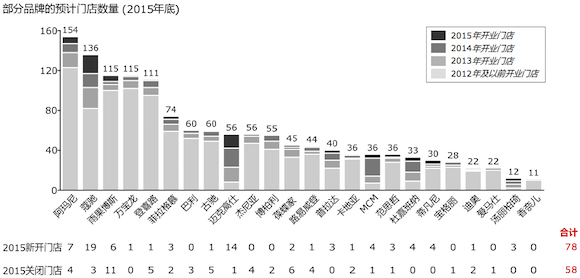 世邦魏理仕在去年 11 月发布的《演变中的中国零售业格局之奢侈品》中提到,一线奢侈品牌从制定选址目标到门店开业通常有半年以上的滞后。也就是说,2013-2014 年新增的门店数反应的其实是 2013 年以前的拓展需求。如今总体门店数已经出现饱和迹象,关店趋势在中短期内或将延续。