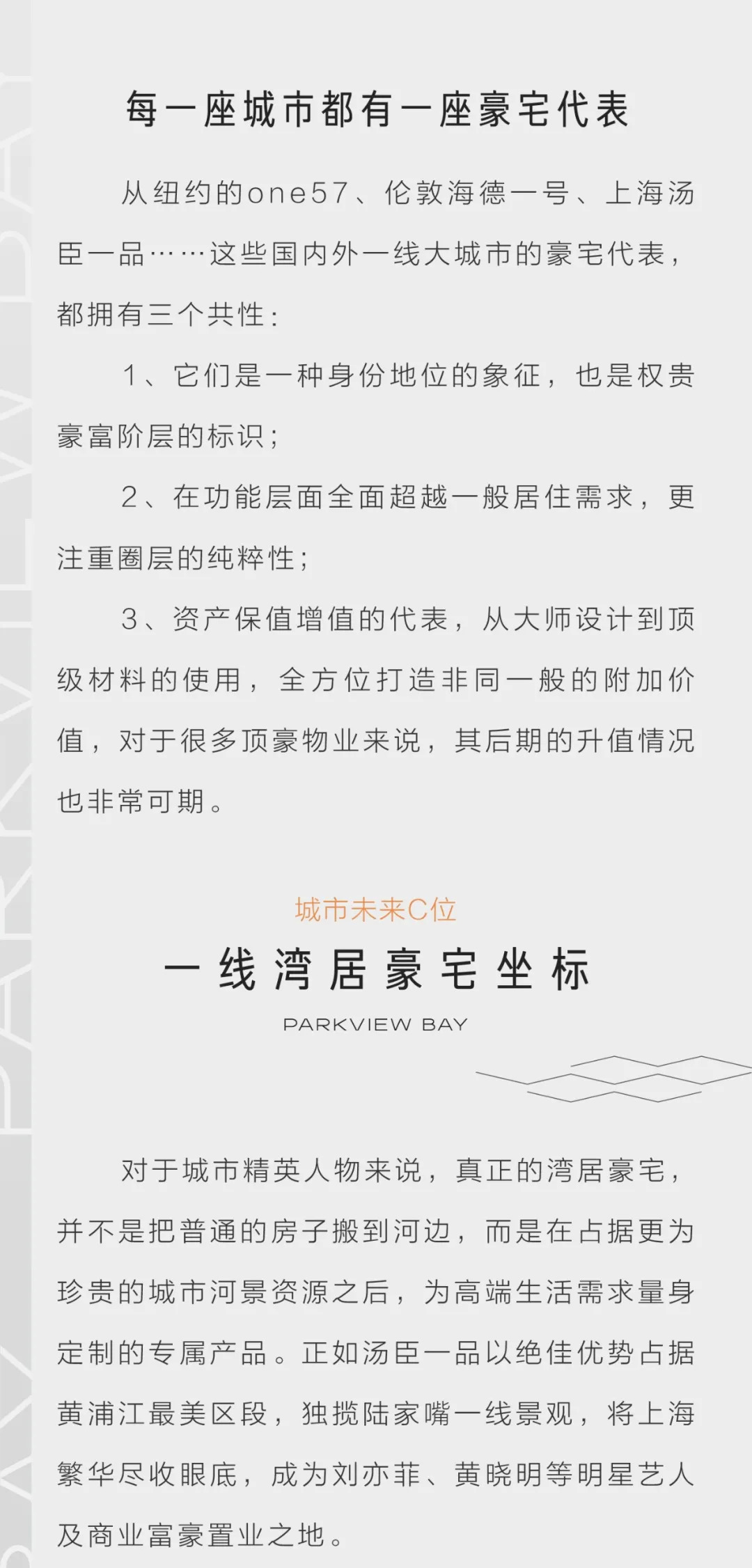 每一座城市都有一座豪宅代表。