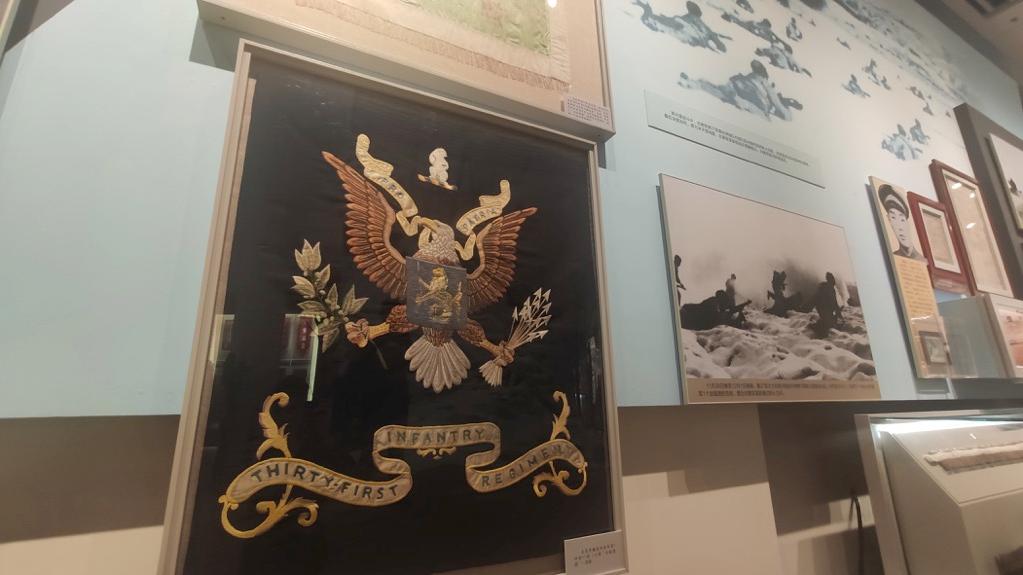 是役,志愿军全歼美军大名鼎鼎的第7师31团“北极熊团”,缴获团旗,完成我军历史上第一次成建制歼灭美军团级部队的壮举。战后,这面团旗作为国家一级保护文物保存于军博,并在此次展览中展出。