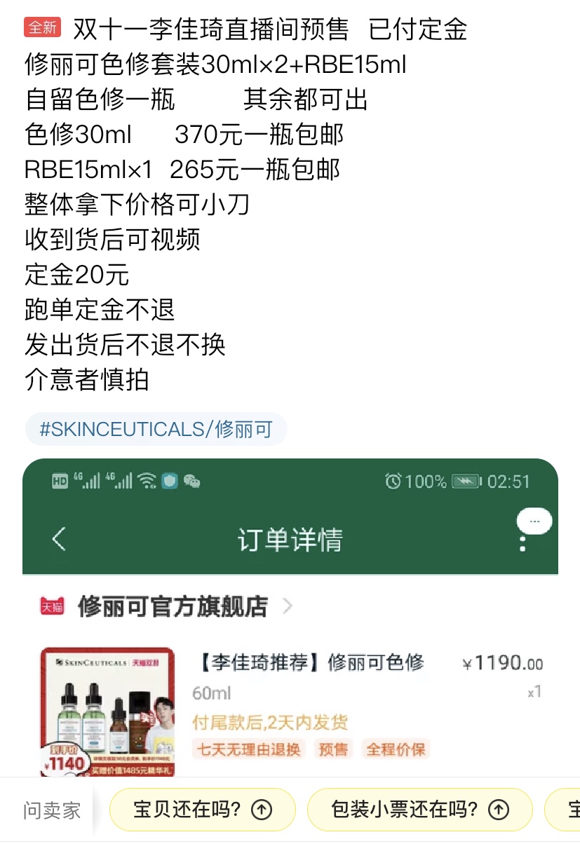 一部分人是在直播间冲动购物之后恢复理智,决定将已付定金的商品转售,并会在付尾款时直接将地址改为对方的地址,以求提前止损。