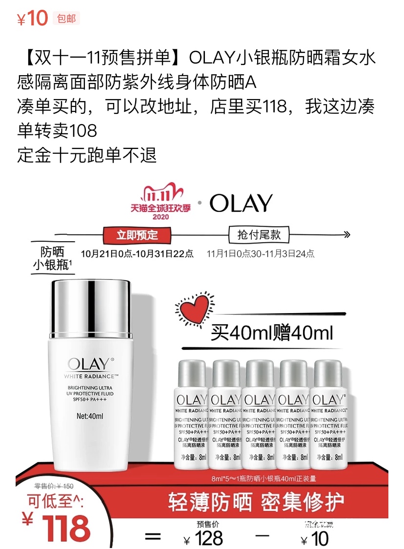 不难发现,近期出现在闲鱼的双11预售产品大部分是美妆产品,这背后的原因是美妆品牌有独特的双11规则,导致消费者不得不通过转售商品获得实实在在的优惠。