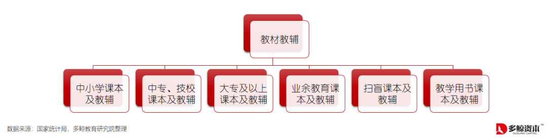 本文使用狭义的教材定义并匹配相应的教辅,将教材教辅分为六类,并做相对应的市场分析,对占大部分市场份额的中小学教材教辅做重点分析。