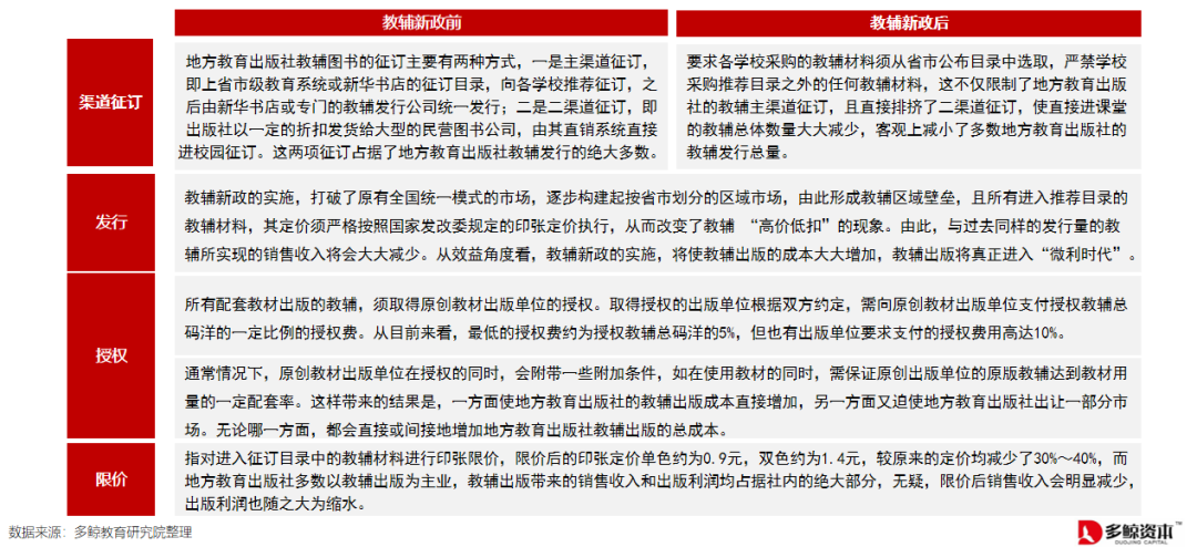 2012 年实施的新的教辅政策为教辅新政,给出版机构和民营企业带来巨大的影响。
